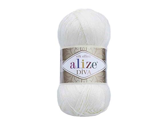 Hand Knitting Yarn 100% Microfiber Acrylic Yarn Alize Diva Silk Effect Thread Crochet Art Lace Craft Lot of 4 skeins 400gr 1532yds Color (1055 Sugar White)