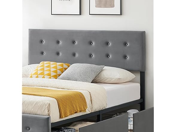 - 【CUSTOMIZE YOUR COMFORT WITH ADJUSTABLE HEADBOARD】The visually appealing button-down fabric interior is padded with soft foam for added style and cushioning. It perfectly matches the height of your mattress so you can read or watch TV in bed