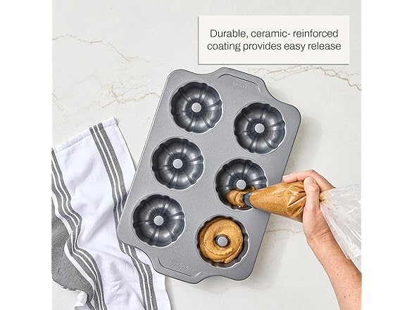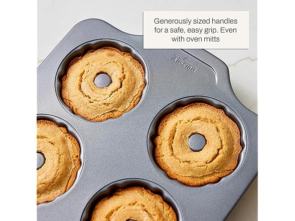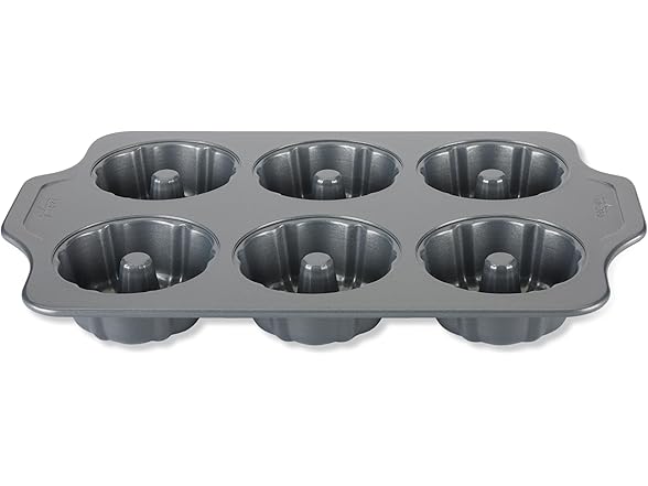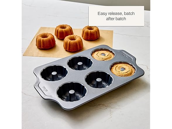 All-Clad Pro-Relelase Nonstick Bakeware, Mini Fluted Cake Pan, 6 Cup, Small Baking Molds, Chocoflan, Donuts, Cornbread, Brownies, Buntz Pound Cake, Durable Ceramic-Reinforced Non stick Coating, Grey
