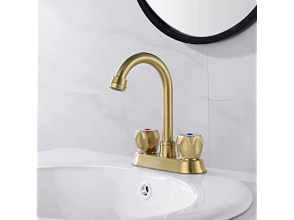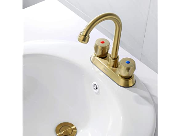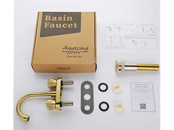 AMAZING FORCE 2 Handle Bathroom Sink Faucet, Centerset Bathroom Faucet with Pop-Up Sink Drain Stainless Steel with Overflow, Supply Utility Hose for Laundry Vanity,Brushed Gold 1.2 GPM