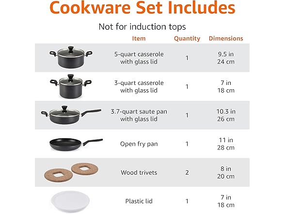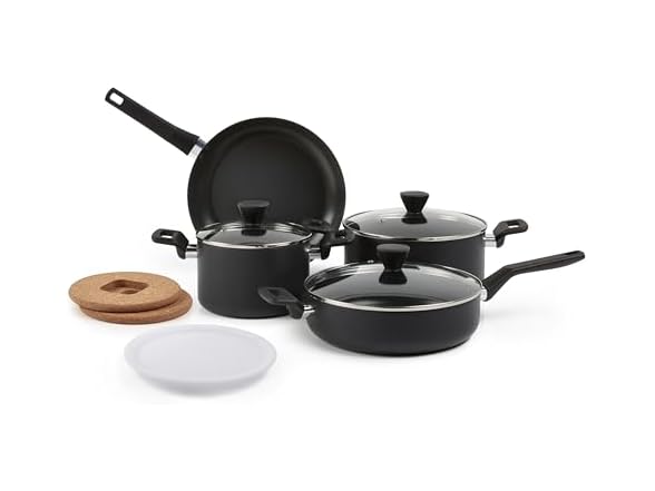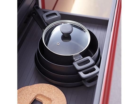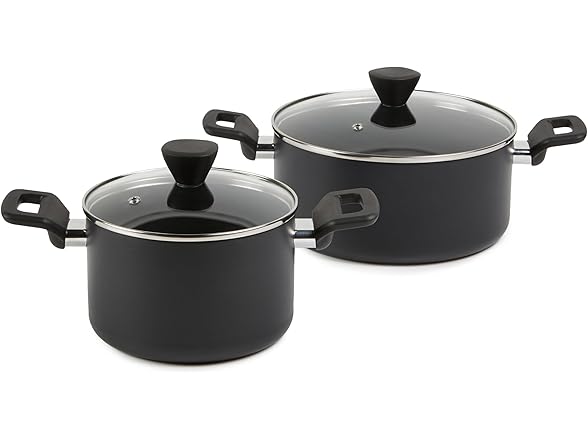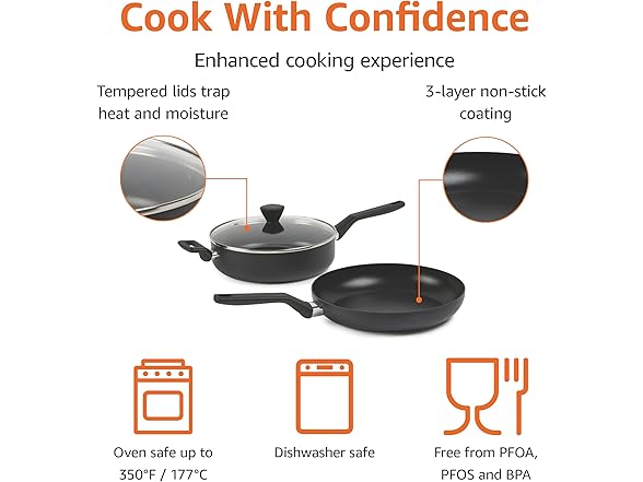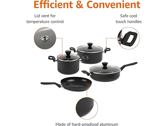 Amazon Basics 10 -Piece Hard Anodized Non-stick Stackable Cookware Pots and Pans Set, Space Saving, made without PFOA, Black