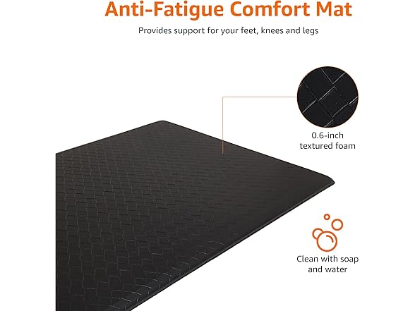 Amazon Basics Anti-Fatigue Standing Mat, Non-Slip, Comfort Mat for Home and Office, 20W x 36L x 0.6Th in, Black, 1-Pack