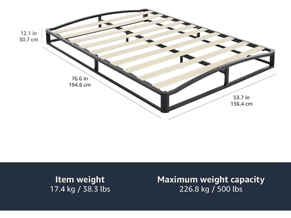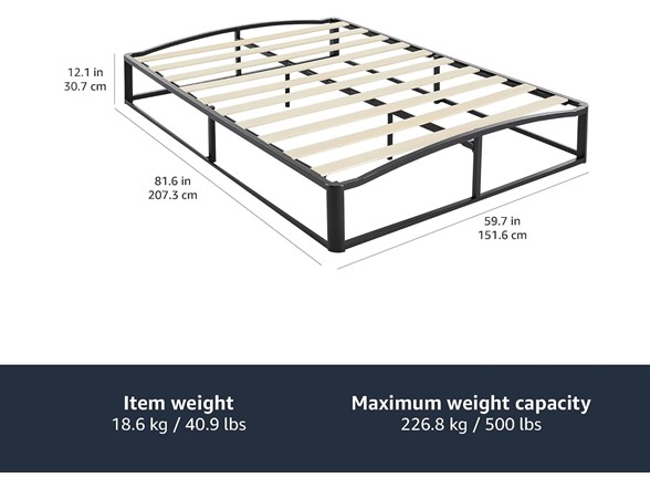 Amazon Basics Metal Platform Bed Frame with Wood Slat Support, Black
