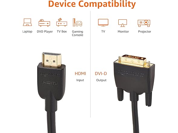 Amazon Basics HDMI to DVI Adapter Cable, Bi-Directional 1080p, Gold Plated, Black, 6 ft, 36-Packs