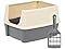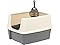 Amazon Basics Large Cat Litter Box with High Sides, Open Top, Includes Scoop, 19 x 15 x 11.75 inches, Grey/Beige