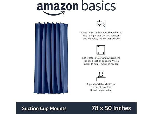 Amazon Basics Portable Window Blackout Curtain Shade with Suction Cups for Travel - 50" x 78", Navy - 1-Pack