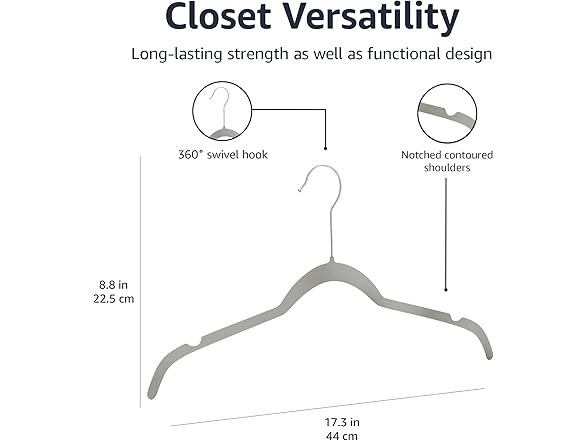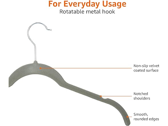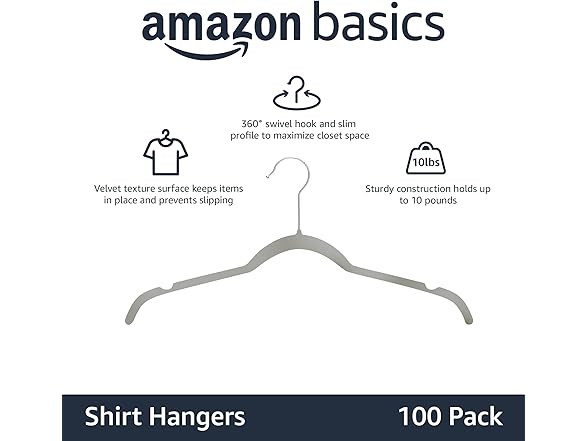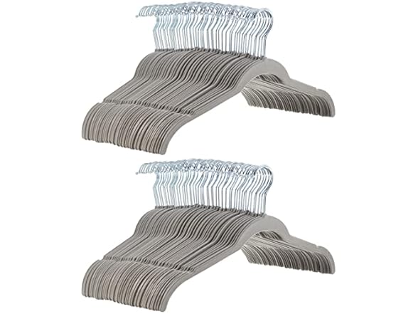 Amazon Basics Non-Slip Shirt Clothes Hangers Velvet, Space-Saving Slim, Sturdy, Pack of 100, Gray/Silver