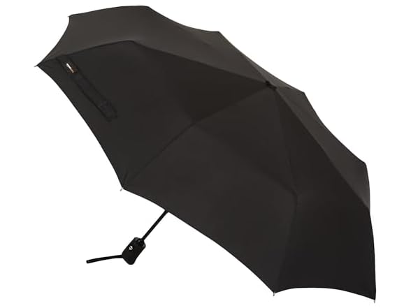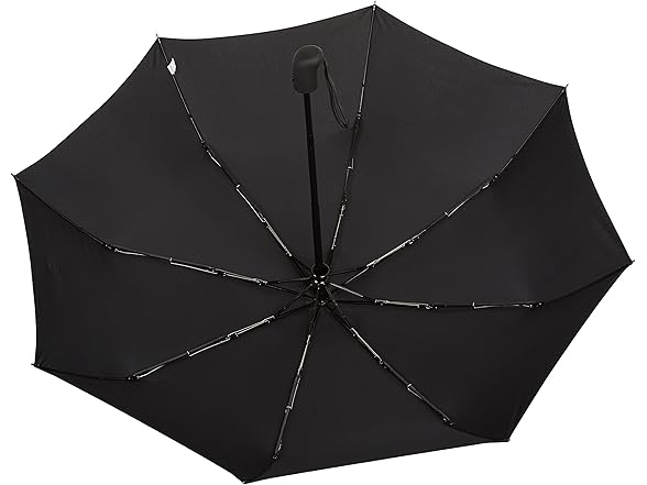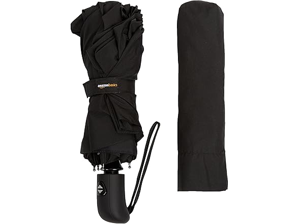 Amazon Basics Round Travel Umbrella for Rain, Compact Umbrella with Auto Open/Close, Strong Alloy Steel Frame, Compact Size for Backpacks/Handbags (11" Long When Closed), One Size, Black