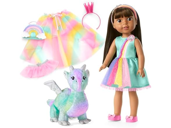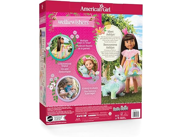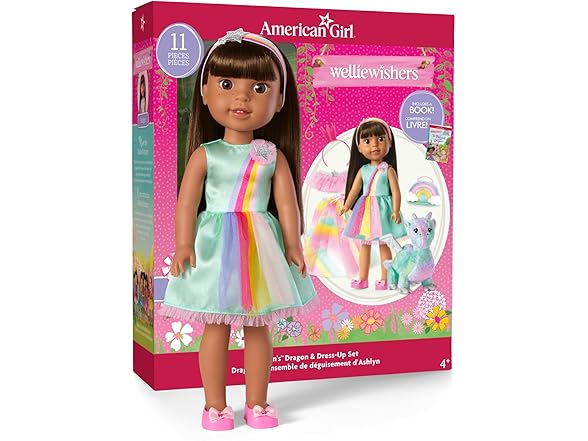American Girl WellieWishers 14.5-inch Ashlyn Doll Playset with Crisella The Dragon, Doll Dress and Accessories, and Storybook, for Ages 4+