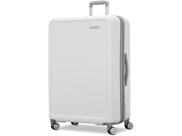 American Tourister Fathead Large Checked Luggage - Customize with Favorite Sports or Character Decal - Durable ABS Hardshell with 1.5" Expansion - 360° Spinner Wheels - RightHeight™ Handle - White