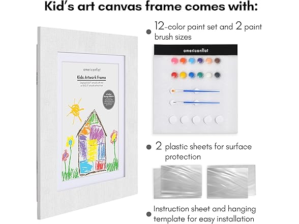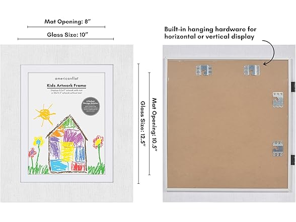 - Art Display for Kids Artwork: Showcase your child's masterpieces with this frames for kids artwork. Designed to hold 8.5x11 photos or art with the mat, or 10x12.5 without the mat, this front-loading picture frame allows for quick and easy changes.
