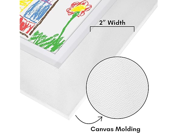 - Timeless Design: Made of engineered wood molding, these kids art frames have a 2" thickness. As one of the kids art frames changeable options, its gallery style design with built-in keyholes allows for wall display, both horizontally and vertically.