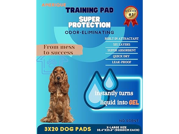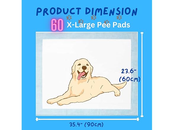 Dog and Puppy Pet Pee Training Pads with Odor-Eliminating Leak-Proof Quick-Dry Design, Potty Training, Super Absorbency, X-Large Size, 35.4 x 23.6 Inches, Pack of 60, Blue & White