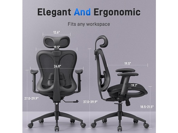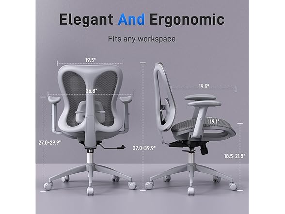 - Elegant Design : Inspired by butterfly wings , this ergonomic office chair features a sculpted backrest that fits the back curve — offering both graceful design and full support for long hours at work or in your home office