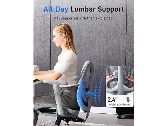 - Adjustable Comfort (No Headrest): This mesh desk chair offers 4 adjustable parts: lumbar support ( up/down ) , seat height , armrest height , and a 90–115° rocking tilt. Personalize your sitting position to stay comfortable through every task