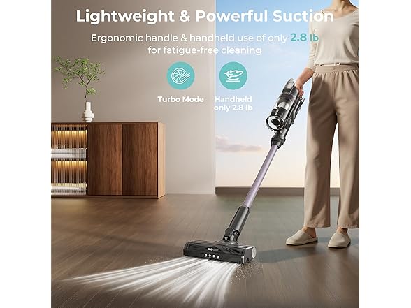 - Easy Control & Self Standing Design: This cordless stick vacuum cleaner total weight of only 4.8 pounds. Features an ergonomic anti-slip handle.Handheld mode weighs just 2.8 lb.Self-standing design enables easy storage.This vacuum cleaner allows instant pause and resume functionality.