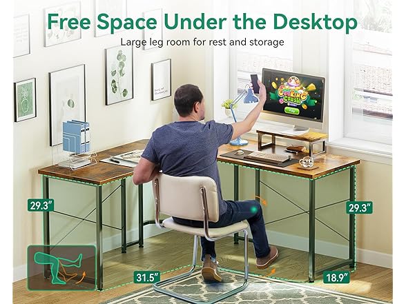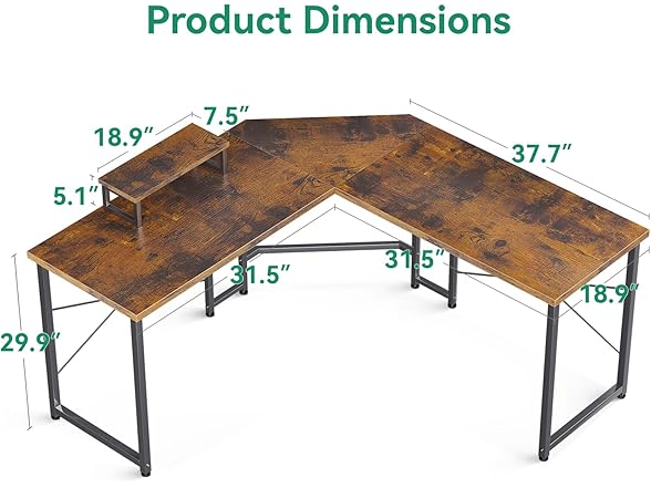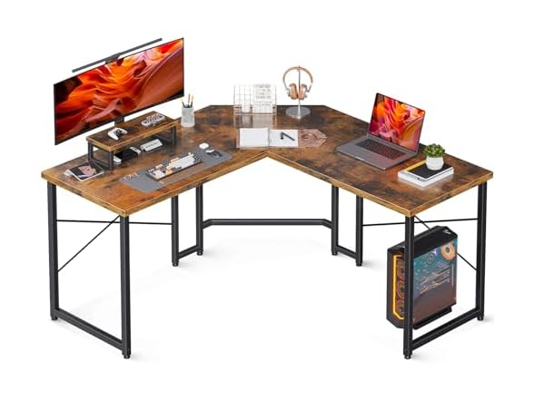 AODK L Shaped Gaming Desk, Computer Corner Desk, PC Gaming Desk Table with Large Monitor Riser Stand for Home Office Sturdy Writing Workstation,51 * 19 inch