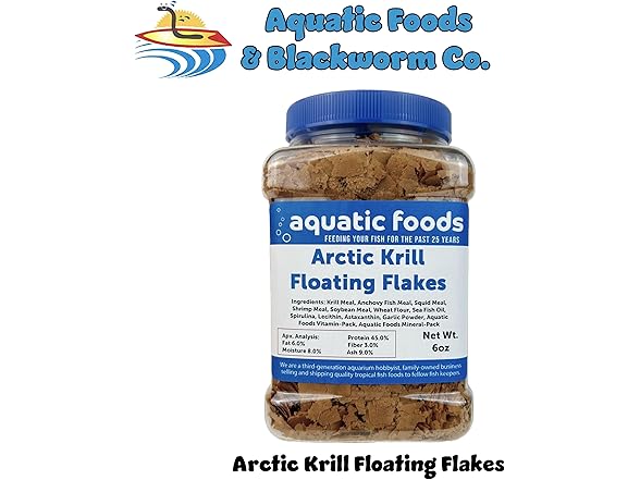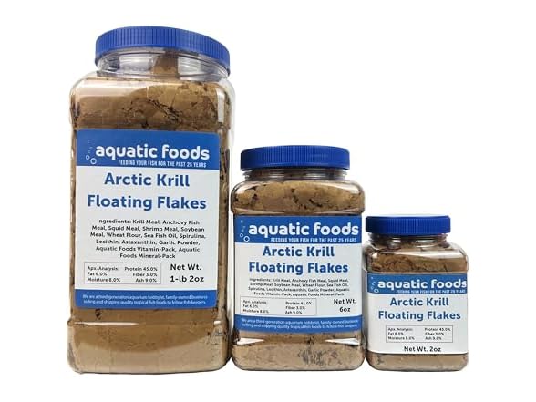 Aquatic Foods Inc. Arctic Krill Flakes with Natural Carotenoids & Astaxanthin to Enhance The Vibrant Colors of Fish, for All Tropical and Marine Fish Also Pellet Mix, Wafer Mix Included…6oz