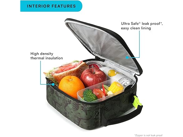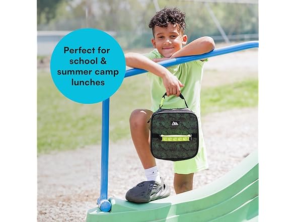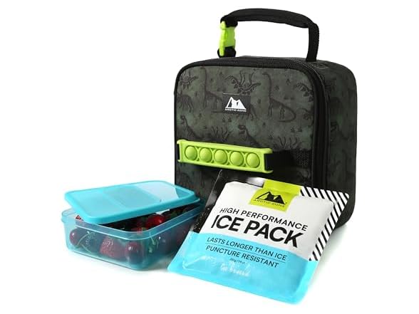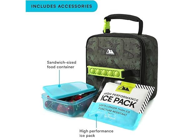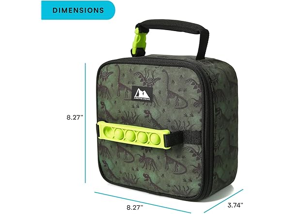 Arctic Zone Pop-it Kids Lunch Box Combo with Sensory Pop Handle, 210g Ice Pack, and Sandwich Container, Dino Skeleton Dye