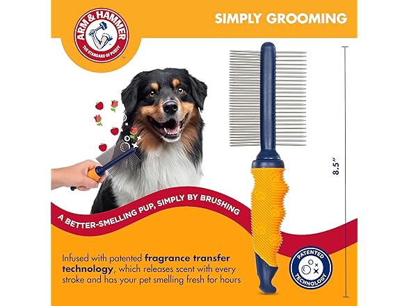 Arm & Hammer Deodorizing Dog Comb with Fragrance Transfer Technology – Scented Dog Grooming Comb for Detangling & Shedding, Dematting Tool For Dogs, Sweet Apple & Rose Scent