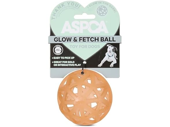 ASPCA Glow-in-The-Dark Cage Ball Dog Toy – Easy-to-Pick-Up Rubber Ball for Nighttime Fetch – Safe TPR Construction, Durable & Fun for Dogs