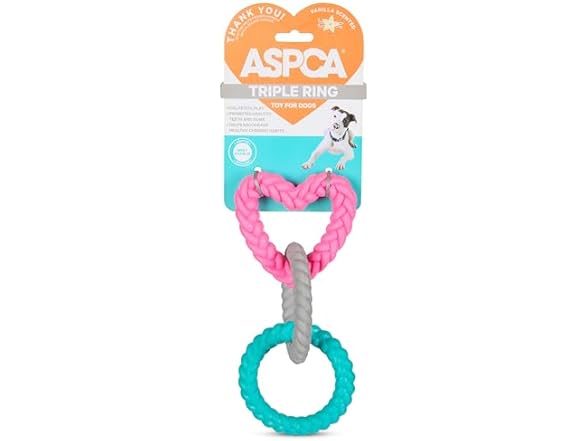 ASPCA Triple Rings Dog Toy – Vanilla Scented Tug & Fetch Chew Toy for Dental Health – Durable TPR Design
