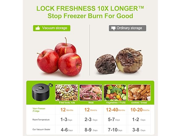 - đ„ŠăKeep Food Fresh Up To 10X Longer â Reduce WasteăStop throwing money in the trash! By removing oxygenâthe main cause of spoilageâour mason jar vacuum sealer for jars helps extend food freshness and prevents freezer burn. Ideal for preserving dry goods, leftovers, garden harvests, coffee beans, and snacksâso you waste less and enjoy better flavor longer.
