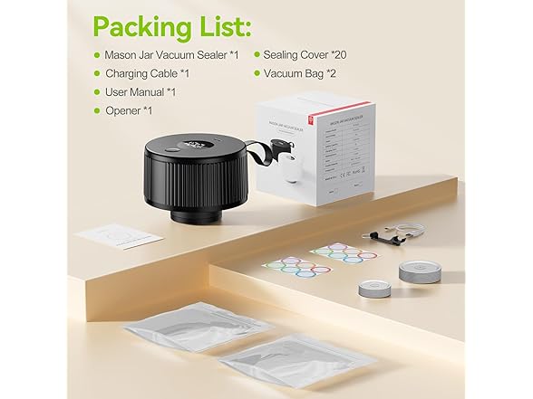 - đŠăAll-in-One Mason Jar Vacuum Sealer KităUpgrade your pantry with the most versatile kit on the market. Our mason jar sealer vacuum kit works seamlessly with both Wide-Mouth & Regular Mouth jars, vacuum containers, and reusable sealer bags. It is the perfect, budget-friendly alternative to bulky freeze dryer machines and heavy vacuum sealers.