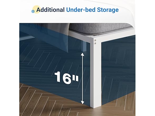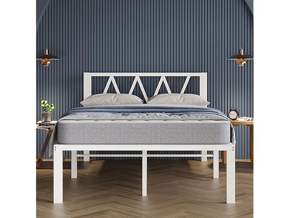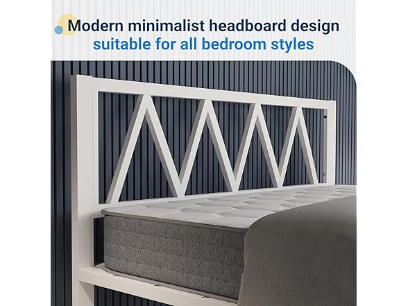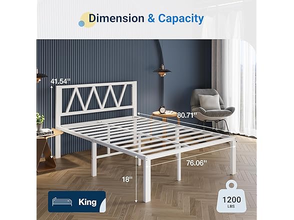 Avenco 18 Inch King Size Bed Frame with Headboard, White Metal Platform Bed Frame, King Bed Frame No Box Spring Needed, Easy Assembly, Heavy Duty Slats Support