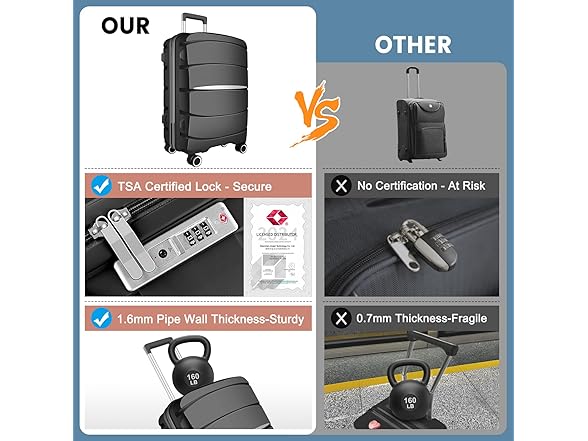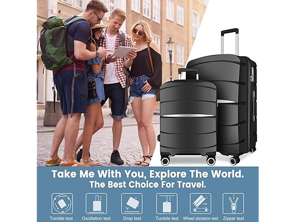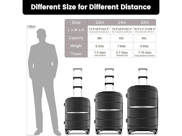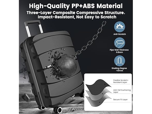 20 Inch Carry-On Luggage 22x14x9 Airline Approved, PP Suitcase with Spinner Wheels