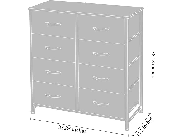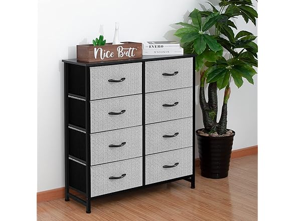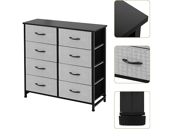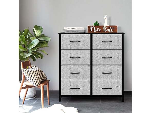 AZL1 Life Concept Storage Dresser Furniture Unit-Tall Standing Organizer for Bedroom, Office, Living Room, and Closet-8 Slim Drawer Removable Fabric Bins, Grey with Black