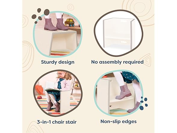 B. toys – 3-in-1 Step Stool and Chair for Toddlers – Ivory White – Durable & Lightweight Design – Furniture for Preschoolers 2+ Years