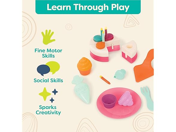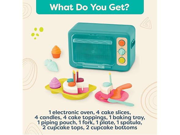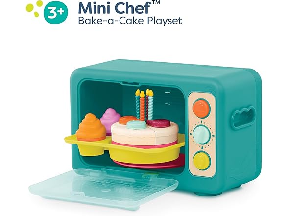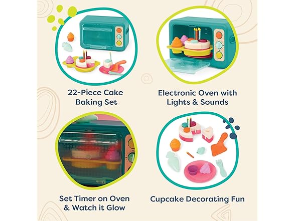 B. toys – Play Oven Set – 22 Pieces Cake Baking Playset – Pretend Cupcake Decorating – Lights & Sounds – 3+ Years– Mini Chef – Bake – a – Cake Playset