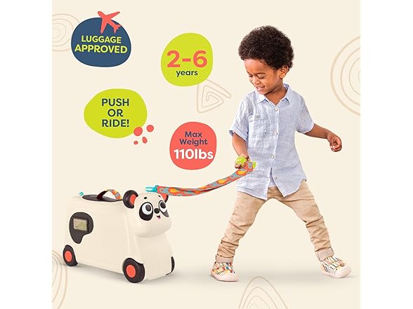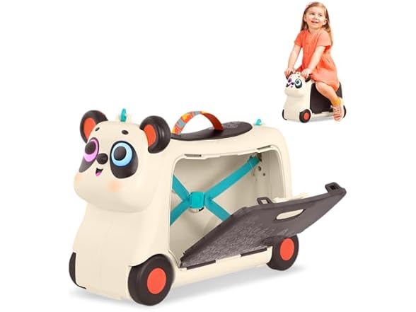 - Ride-On Suitcase: A lightweight and sturdy ride-on toy that can double as a carry-on sized suitcase!