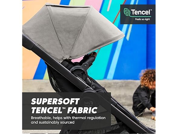 - Sustainability meets comfort with soft, breathable, thermal-regulating TENCEL fabric, which is used on the stroller's canopy and padded seat and the infant car seat's canopy