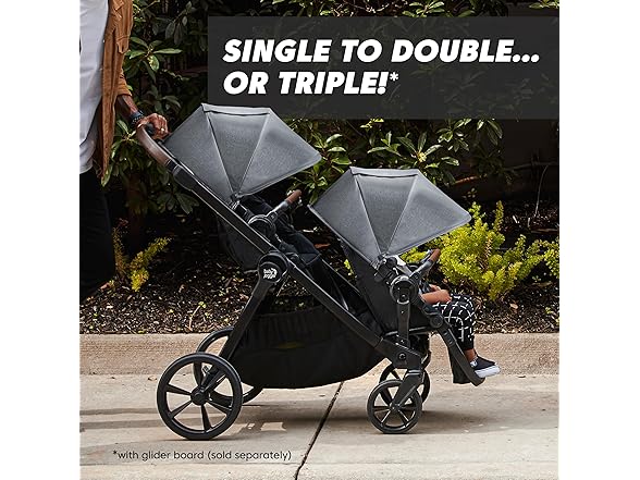 - Fully featured modular stroller converts from single to double or triple stroller with glider board (second seat, infant car seat, and glider board sold separately)