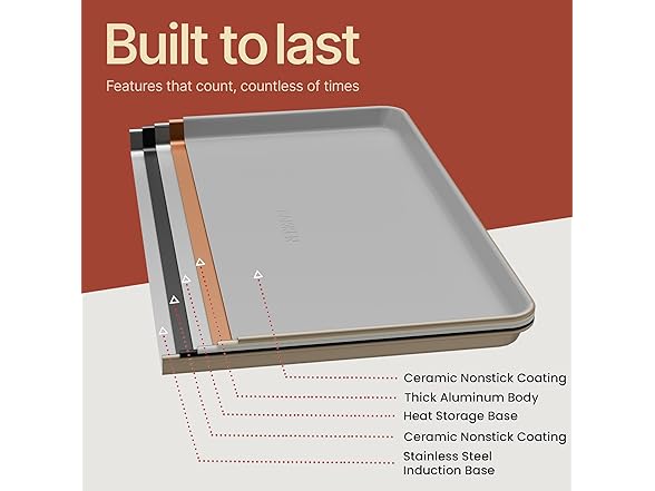 - DURABLE AND EVEN HEAT DISTRIBUTION: Crafted from high-gauge aluminized steel, this bakeware set offers durability and excellent heat distribution for consistent and delicious results every time.