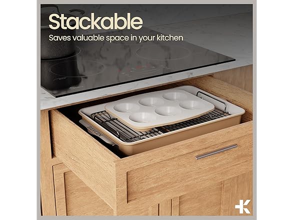 - HEALTHY BAKING MADE EASY: Enjoy guilt-free baking with our 8-piece stackable bakeware set featuring a ceramic non-stick coating that is PFOA, PFAS, and PTFE free, ensuring a healthier cooking experience for you and your family.
