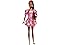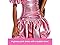 - Bask in the shine of this Barbie doll's glossy outfit! She brings major metallic energy in a coral pink dress with a bubble hem.
