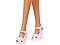 - She wears a satiny pink blouse and sparkly, ruffled skirt made with a fun-to-touch fabric! Strappy lavender heels add an extra note of style savviness to her sweet look.