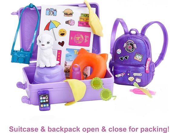 - The petite doll is ready for her next big adventure with her puppy and 10 plus travel accessories to inspire storytelling.