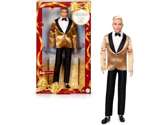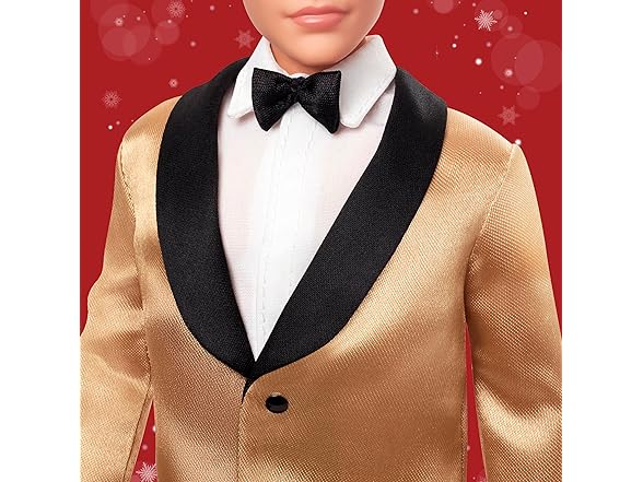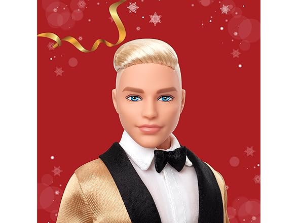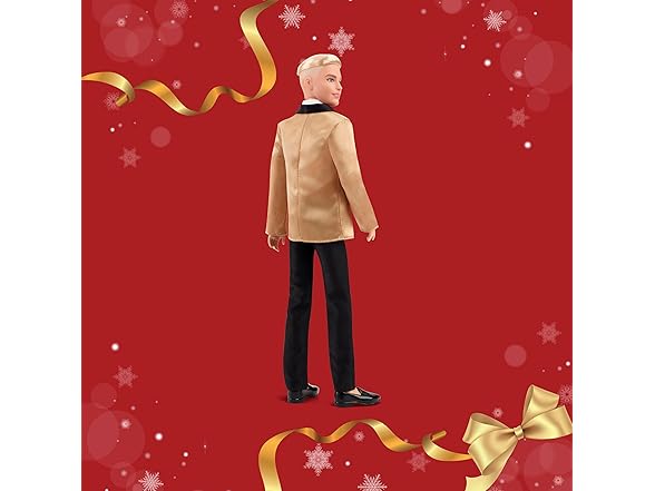 Barbie Signature 2025 Holiday Blonde Ken Collectible Fashion Doll Wearing Full Suit with Golden Jacket in Displayable Packaging & Doll Stand