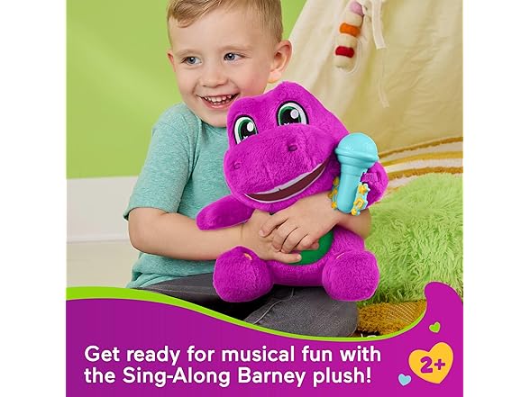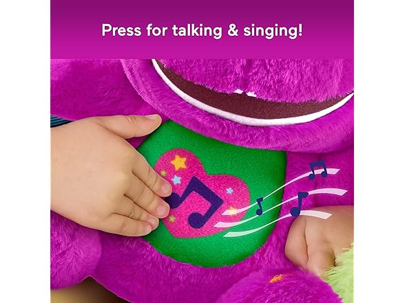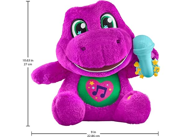 Barney’s World Toddler Toys by Fisher-Price, Barney Tall Plush, 10.5 -inch Figure with Sounds, Soft Texture for Play, Kids Ages 2+ Years