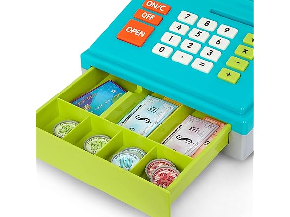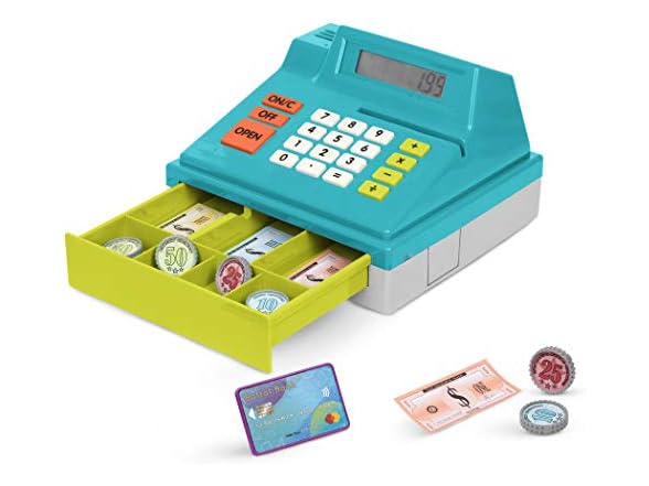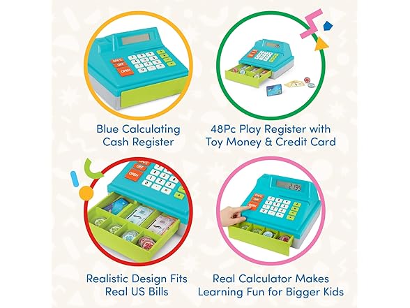 Battat Toy Cash Register for Kids, Toddlers, 48 Pieces with Toy Money, Credit Card, Pretend Play, 3+ Years