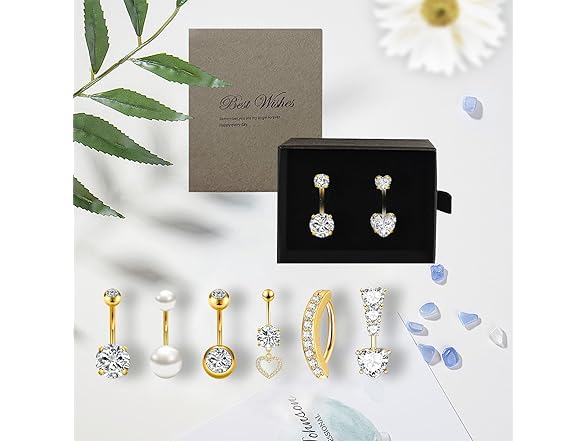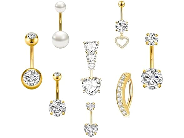BBeimiss Belly Button Ring - Belly Button Piercing for Women Surgical Stainless Steel CZ Opal Pearl Belly Rings Clicker Belly Piercings Navel Piercings Pack