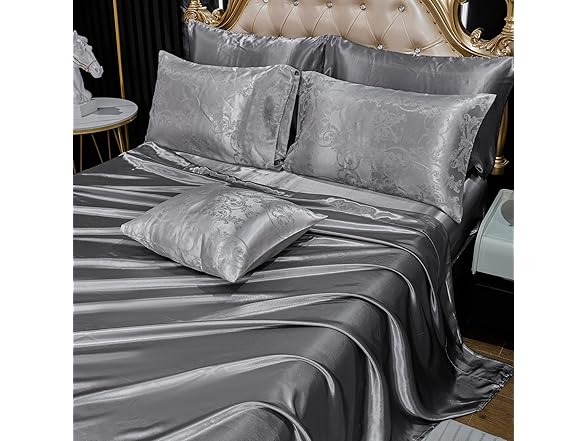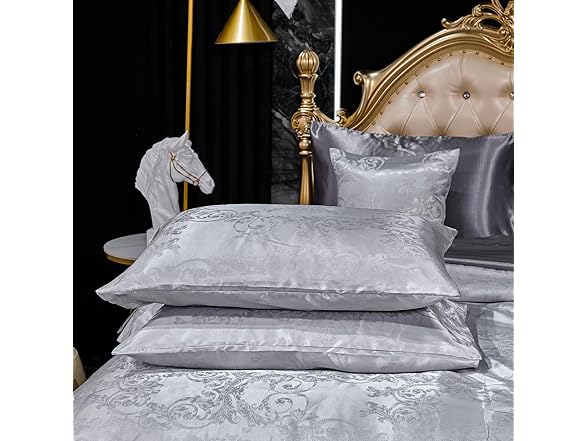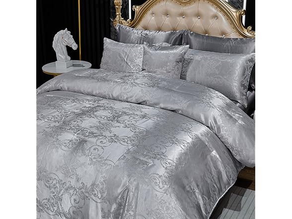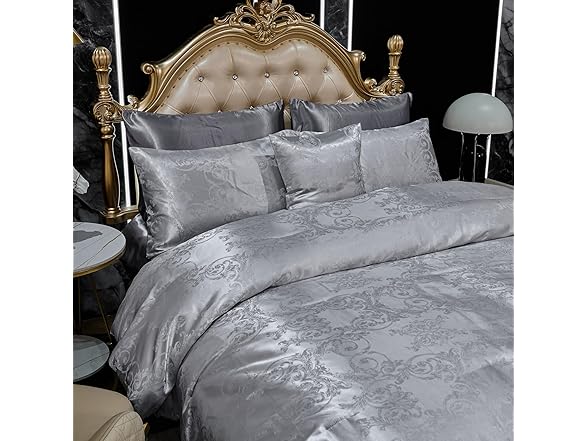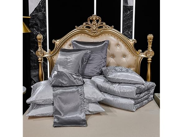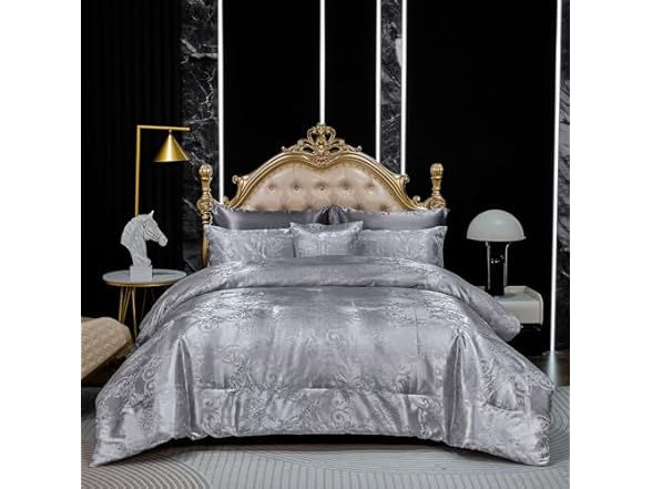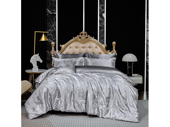 Bedding_Dreamer Jacquard Full Comforter Set with Sheet Set Grey Bedding Set 8 Pcs Embroidery Neoclassical Floral Pattern Bed Home Decor Soft Down Comforter Luxury Hotel Silky Bed in a Bag with 1 Cushion Cover