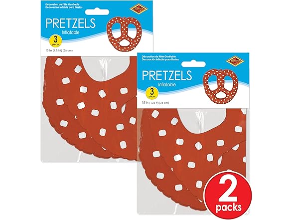 - MEASURES: Each Inflatable Pretzel Decoration measures 15.5 inches wide by 14.5 inches tall – Pretzels come flat in the package and will need to be inflated with air