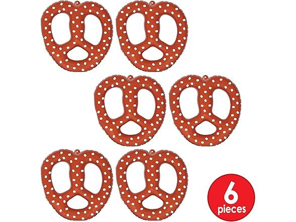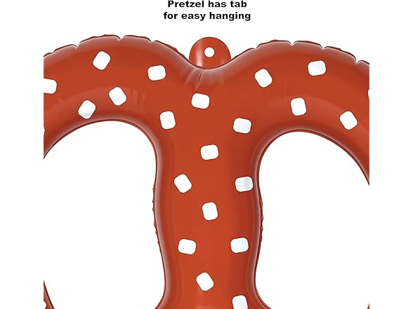 - INCLUDES: 6 Novelty Inflatable Brown Pretzels with printed salt detailing in the package – Each Pretzel has a hang tab – simply put a string through the hole in the tab and hang from the ceiling