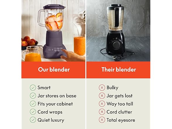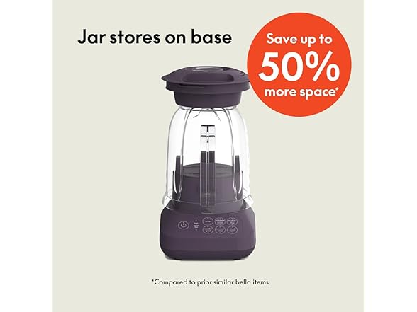 - Space-Saving Design: Part of our Fits-anywhere kitchenware system, the bella Flip & Store Smoothie Blender features a unique design where the 6-cup jar flips onto the base, saving up to 50% more space when stored. Perfect for compact kitchens!