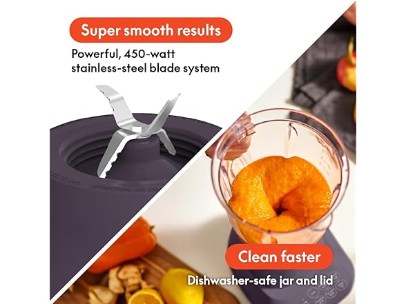 Meet the bella Flip & Store Blender, a sleek and space-saving powerhouse designed for modern kitchens. With its innovative flip jar storage design, our blenders fit seamlessly into any cabinet, keeping your kitchen tidy and organized. The slim profile of this small food processor not only saves space but also adds a touch of style to your countertop. Powered by a 450-watt rated (520W peak) blending system, this ice crusher is equipped to handle everything from ice to fresh and frozen fruits and vegetables. The durable 4-tip stainless steel blade ensures smooth, consistent results, whether you’re whipping up slushy cocktails, creamy soups, or large protein shakes for the whole family. The generous 48 oz capacity pitcher is perfect for blending family-sized portions, making it a versatile tool for all your culinary creations. The hand blender’s 10 speed control settings offer complete flexibility, allowing you to customize your blend from smooth purees to chunky salsas. The lid features a convenient filler cap that doubles as a measuring cup, making it easy to add ingredients on the go. Cleaning up this milkshake maker is a breeze with the removable, dishwasher-safe jar and lid. Available in five stylish bella colors—Oatmilk, Surf, Plum, Seaglass, and Blossom—this baby puree maker isn’t just functional; it’s a perfect gift for new apartments, housewarmings, or wedding registries. The cord storage in the base keeps everything neatly tucked away, ensuring your kitchen stays clutter-free while you enjoy powerful, efficient blending every time.